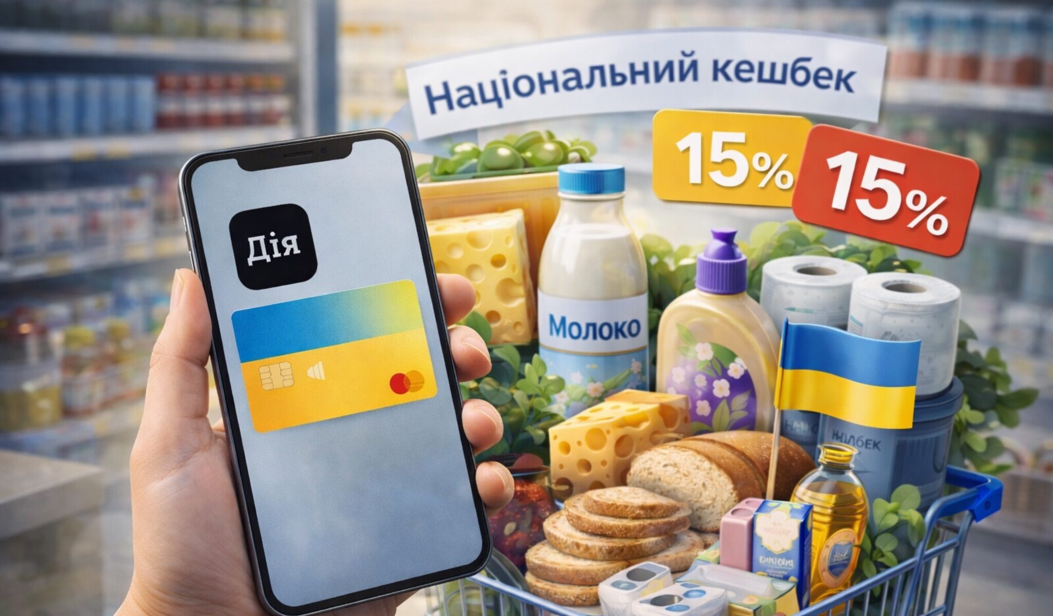 З 1 березня 15% кешбеку нараховуватимуть на українські товари в категоріях, де імпорт перевищує 35% споживчого ринку. Йдеться переважно про непродовольчі товари: