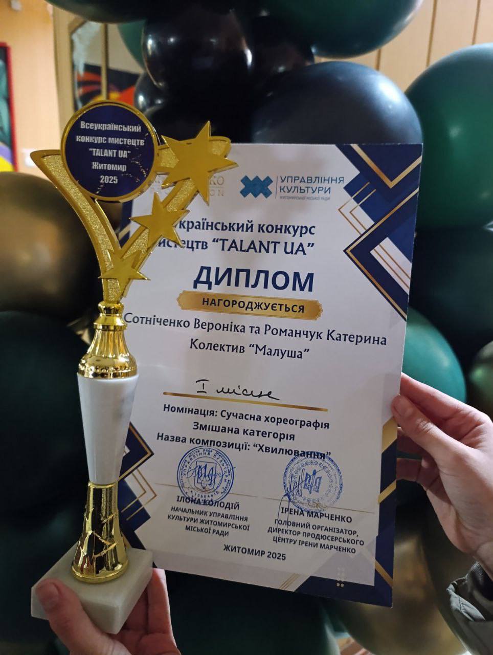 На Всеукраїнському конкурсі мистецтв «TALANT UA», який днями відбувся у Житомирі, юні учасники з Малинської громади здобули одразу кілька престижних нагород. Діти представили сучасні хореографічні та модельні композиції й продемонстрували яскраву підготовку та творчу самобутність.