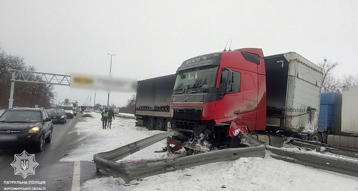 Про це повідомила патрульна поліція Житомирської області. Через ДТП рух частково обмежений в обох напрямках, на ділянці організували реверсний проїзд. Обставини події встановлюють.