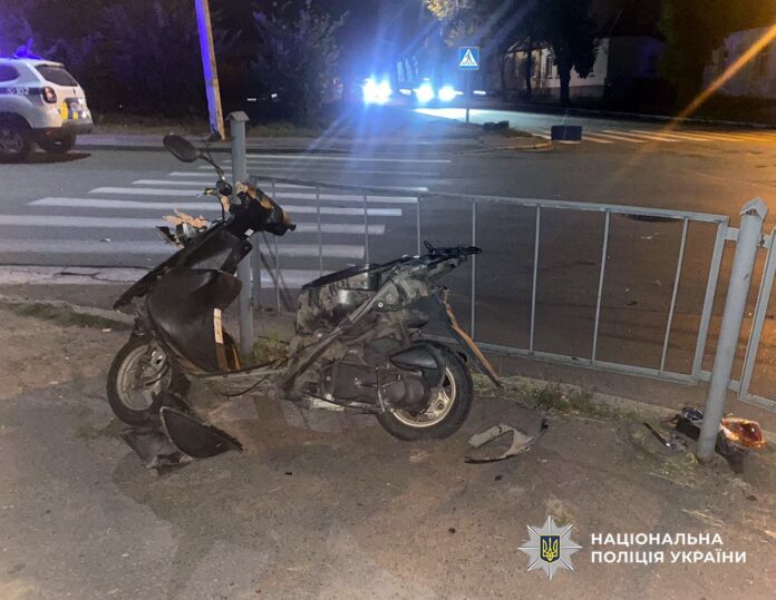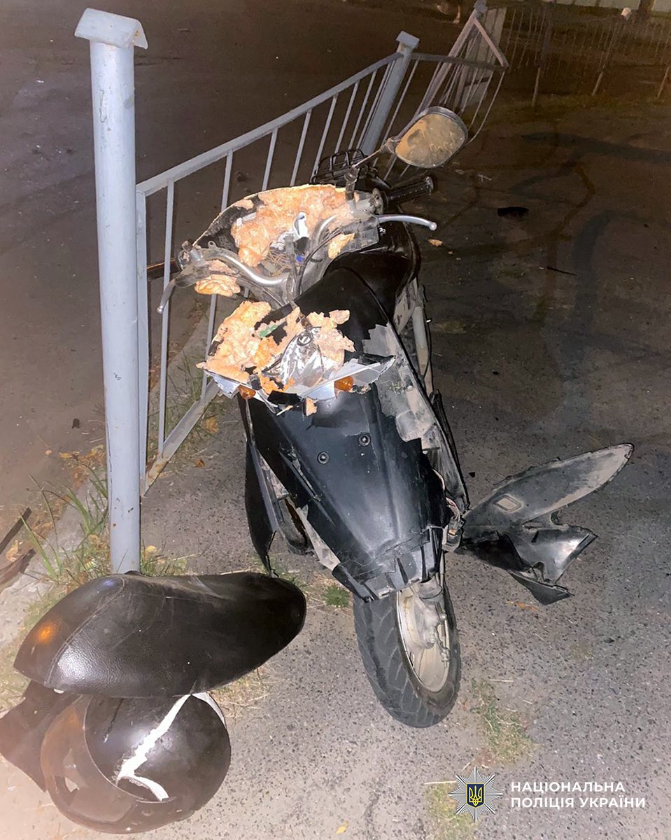 У результаті аварії водій і пасажир мопеда дістали травми та були госпіталізовані. Медики встановили, що в крові 25-річного кермувальника було 1,16 проміле алкоголю.