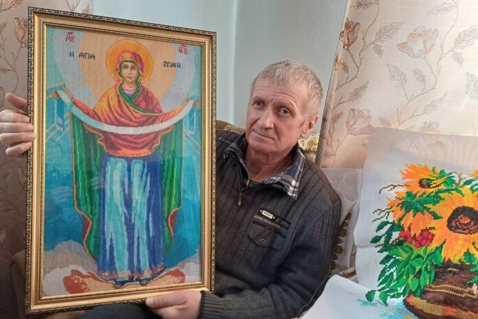 «І портрети вишиваю, і квіти, букети. Раніше багато простирадл вишивав, підзорники — на все ліжко», — каже Валерій Кириченко.